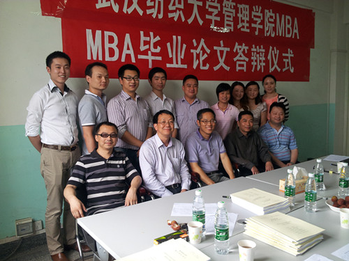 6月1日上午,我校beat365官方网站首届工商管理硕士(MBA)学位论文答辩仪式在南湖校区举行。答辩委员会专家由副校长潘慧明教授、beat365官方网站院长夏火松教授、中国人保武汉分公司车险部周承新经理、beat365官方网站MBA中心常务副主任陈勇跃副教授、陈子彤副教授组成,首届MBA全体学员出席了答辩仪式。