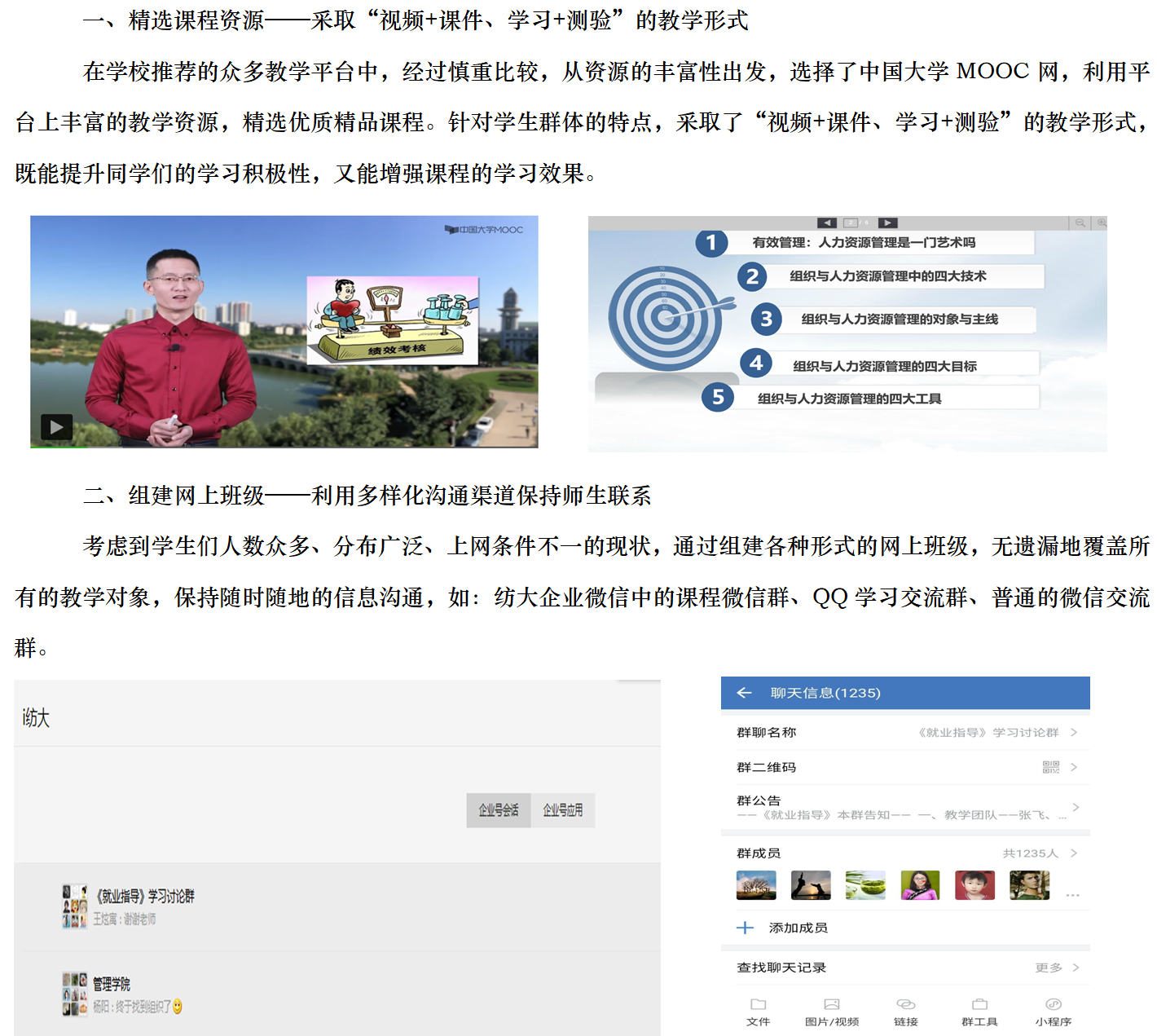 学院根据线上教学情况,结合师生反馈的信息,及时总结分析优秀教学案例。人资、工商、信管、电商、物流、服管6个系相继推出了“一平三端”智慧教学日记、慕课实战演练、视频课程制作、云课堂多元化互动等多个线上教学典型,强调以改革理念推进线上教学,不断提高学生自主学习能力,加强在线教学指导和服务,全力保障在线教学顺利进行。