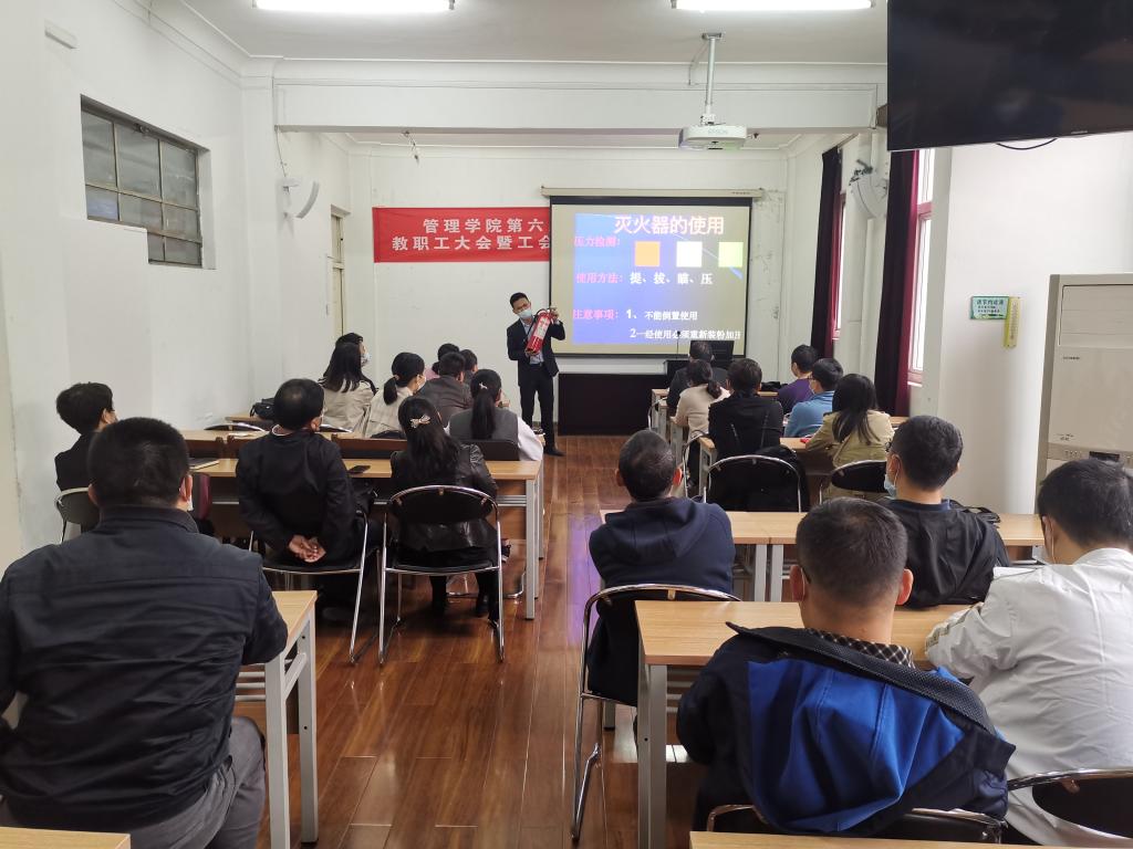 讲座结合近期典型案例从四个方面为广大教职工进行了生动的讲解。一是围绕火灾事故的常见类型,通过图片和视频等方式为大家敲响警钟;二是结合具体案例,详细介绍了如何杜绝火灾隐患、如何判断火灾类型、如何确定火灾程度、如何正确使用灭火器等相关技能;三是列举了火灾逃生自救的方法原则,告诫大家在面对火灾时要沉着冷静,借助消防工具学会自救;四是认真学习消防法律法规和消防安全常识,做好火灾事故的预防。