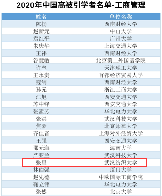 4月22日,全球性信息分析公司爱思唯尔(Elsevier)正式发布了2020年中国高被引学者(Highly Cited Chinese Researchers)榜单,我校beat365官方网站张星教授作为工商管理学科学者成功入选。据了解,在2020年管理学科大类中,共2所湖北省属高校3位学者入选。