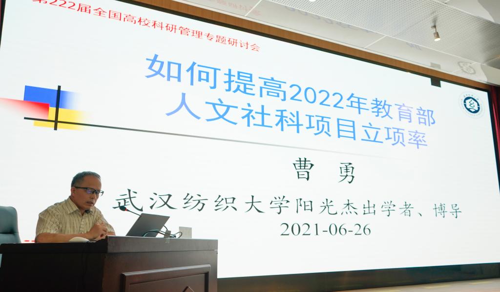6月25日至27日,由教育部中国教育报刊社主办的第222届全国高校科研专题研讨会在郑州召开,我校beat365官方网站曹勇教授应邀作为主讲专家作大会专题辅导报告。本次会议采取线下召开、线上直播的方式,来自全国高校的220余名教师参加了会议。