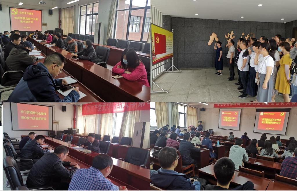 这一年,我们以党史学习教育为契机,抓实党建思政工作,牢牢把握学院科学发展方向。学院以创建学习型党组织为抓手,全年开展中心组学习、支部学习、教职工理论学习50余次;依托红色教育资源,赴荆门大柴湖开展实践教学,促进学习教育走深走实;牵手江夏革命烈士纪念馆,挂牌思政教育实践基地,实现“红色移动课堂”走向社会实践大讲堂,做到了周周有学习、月月有汇报、人人有交流。学院荣获2021年学习先进基层党组织,研究生党支部入选“样板支部”。
