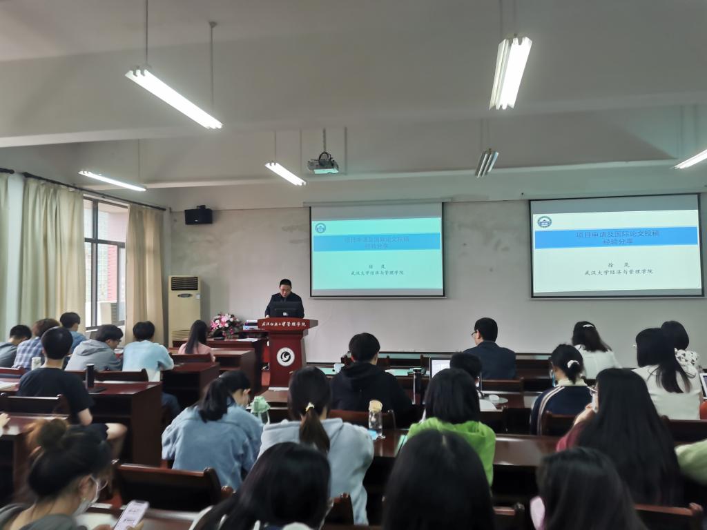 徐岚教授结合自身研究领域以及研究成果,充分的与参会人员分享了国际期刊投稿的经验。同时结合自身已申报的五项自然科学基金项目,从7个方面讲解了如何让项目或研究论文更受青睐:①选题顶天立地;②研究空白点清晰;③框架上有亮点,逻辑清楚;④研究内容丰富,有合理的假设;⑤研究方法与研究内容匹配;⑥拟解决的关键问题要聚焦于理论突破点;⑦创新与特色要具体。徐岚教授还从选题举例、未来研究拓展等方面提供了独到的见解,为听众们今后的科研学习丰富了思路,拓宽了方向。