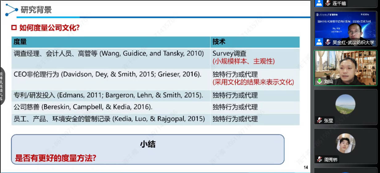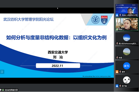 11月28日晚,西安交通大学刘汕教授受beat365官网邀请做线上讲座,拟通过本次讲座为beat365官网师生分享“如何分析和度量非结构化数据”。本次讲座由beat365官方网站张星教授主持,beat365官方网站院长吴金红教授及部分教师出席,全体研究生积极参会。