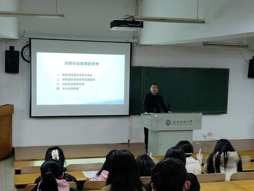 本次宣讲动员大会中,副院长张飞从创新创业与学生成长、学院创新创业教育实践路径、创新创业教育成效及本科生导师制四个部分为同学们做了详细介绍,并勉励同学们通过参加创新创业大赛的历练,在创新创业中增长智慧才干,激发创新活力,将知识转化为服务国家和社会的蓬勃力量。