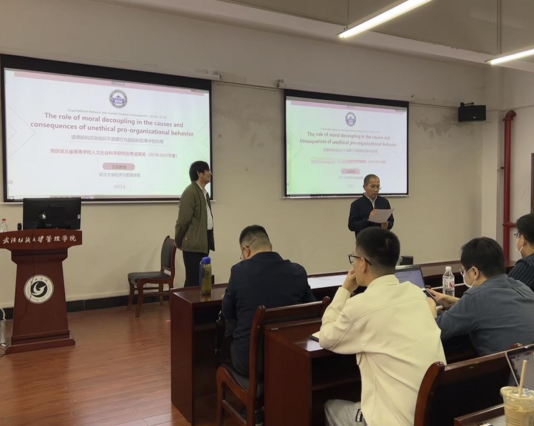 5月10日下午,武汉大学卫武教授受beat365官网邀请来学院进行讲座,为beat365官网师生分享“道德脱钩在亲组织不道德行为前因后果中的作用”。本次讲座由beat365官方网站院长吴金红教授主持,beat365官方网站部分教师出席,全体研究生积极参会。