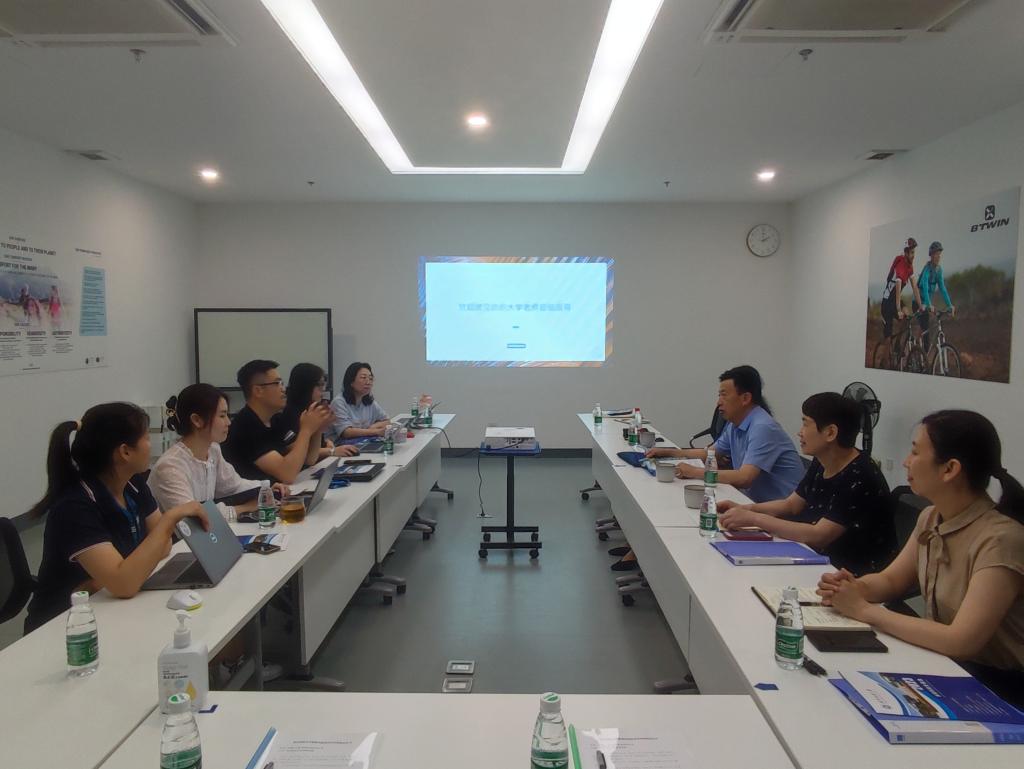 交流会上,王晓初对程碧海一行的到来表示欢迎。王晓初详细介绍了迪卡侬企业发展历史、经营布局、发展方向、岗位需求等基本情况,并观看了企业宣传片。王晓初表示,作为beat365官方网站06届毕业生,非常希望能够与纺大建立校企合作关系,为更多纺大优秀学子提供多元化的实习就业岗位。