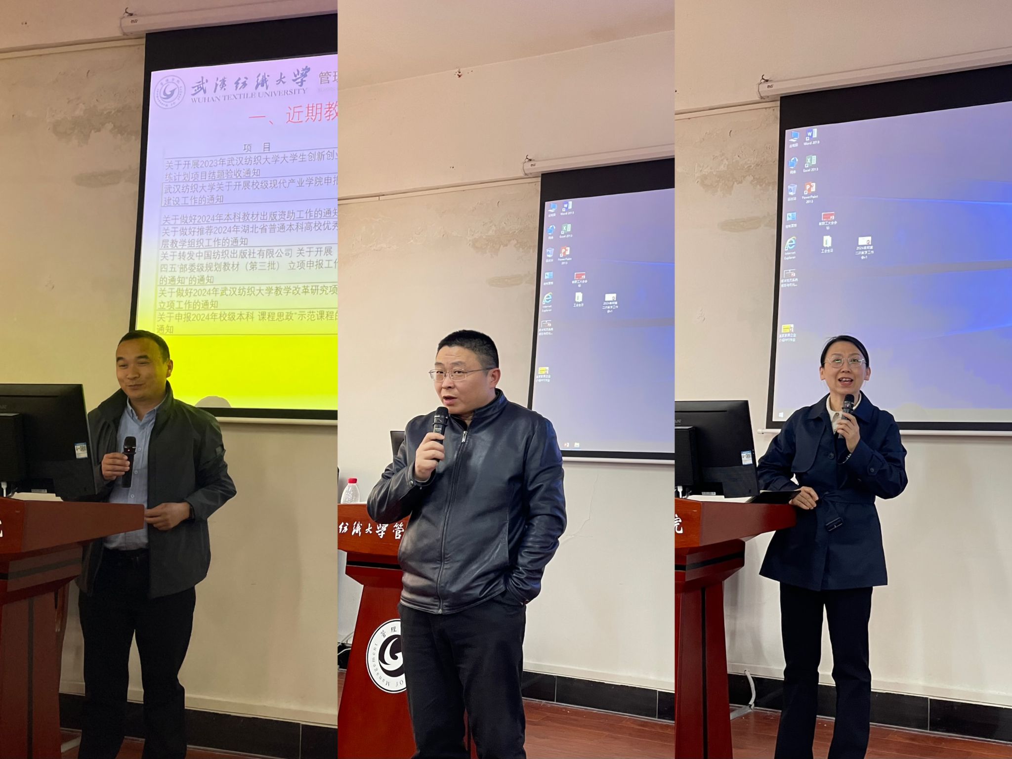 会上,学院副院长吴锦峰、张飞,党委副书记耿迪就教学申报、研究生考试情况、国家项目基金申报、学生就业及班主任工作制度等各分管工作进行了工作安排与部署。