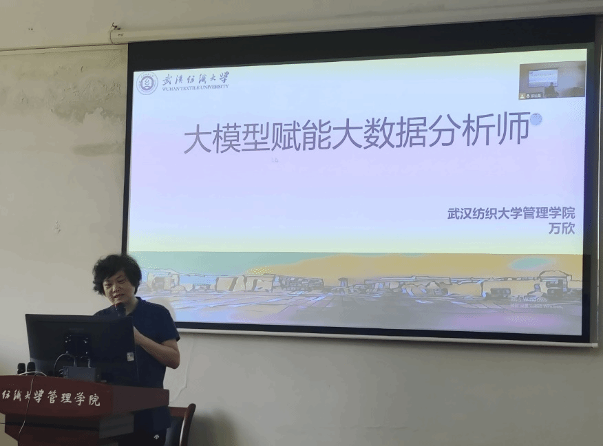 万欣老师以《大模型赋能大数据分析师》为主题展开分享,内容涵盖了当前大数据领域的前沿技术和发展趋势。介绍了大模型在当今人工智能时代的重要性和应用范围,分享了如何有效利用人工智能技术进行数据分析的实践经验和技巧,以及详细阐述了大模型如何为大数据分析师提供更强大的支持和赋能,提高数据分析的效率和准确性。最后,展望了大数据分析行业未来的发展趋势和应用前景,鼓励学生们持续学习和提升自己的专业能力,总结了本次讲座的重点内容,为现场师生留下了深刻的印象和启发。