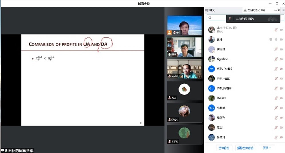在自由交流环节,相关教师和学生们踊跃提问,田林教授一一给予了耐心细致的解答,特别针对模型的设置、消费者效用函数的构建、模型与实际的结合等问题与beat365官网师生进行了热烈的讨论。最后,余牛教授对本次讲座内容进行总结,并再次表达了对田林教授的感谢,讲座圆满结束。