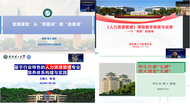 下午分论坛开始,由武汉大学杜旌教授主持的教学研讨分论坛热情四溢。首先,来自武汉科技大学的周勇教授带来题为《管理课堂:从“照着讲”到“造着讲”》的汇报,引起了参会老师们的共鸣;第二位嘉宾是来自武汉理工大学的胡浩教授,分享的题目为《基于行业特色的人力资源管理专业培养体系构建与实践》,获得了在场嘉宾们的高度评价;第三位嘉宾是来自中南财经政法大学的芦青教授,分享的题目是《<人力资源管理>课程教学摸索与反思——一个“青椒”的视角》,他活泼轻快而又睿智地分享了自己在教学中的经验和感悟,引来观众的阵阵掌声和欢笑。第四位嘉宾是来自中南民族大学的李红玲教授,分享的题目为《师生共建“五感”,消灭课堂“无感”》,让在场嘉宾和观众深刻感受到一名深耕教育事业的高校教师的崇高素质和在教学上的巧妙思考。伴随着诸多学者的热烈讨论和高度赞扬,该分论坛顺利开展。