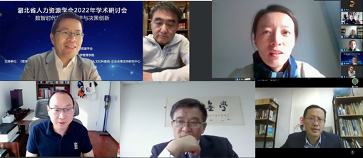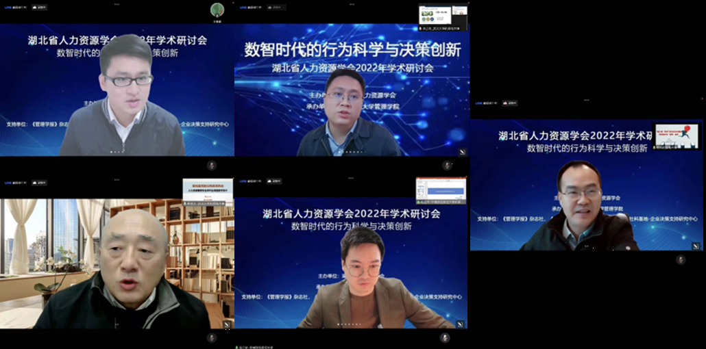 为了更好把握新形势带来的机遇,更好迎接新时代的新挑战,服务国家重大战略需求,汇集和展示行为科学等学科领域的最新研究成果,进一步促进我省人力资源管理领域的交流和学科发展。2022年11月13日,湖北省人力资源学会2022年年会在线上召开,本次会议的主题是“数智时代的行为科学与决策创新”,会议由湖北省人力资源学会主办,由beat365官方网站承办。旨在为相关领域研究者、教育教学工作者、实践工作者提供交流平台,活跃科研教学思路和实际管理工作思路,拓展学术视野与多种形式的合作空间。本次会议邀请了省内人力资源领域的众多专家学者及企业嘉宾出席研讨,也邀请了省内各个兄弟院校相关领域的师生参与会议,会议当天腾讯会议参会人员256人次,直播链接观看人员267人次,共计540多人参与到这次年会活动中来。本次会议共收到高水平投稿60多篇,一定程度代表了湖北省人力资源领域较为先进的研究水平。会议开始由beat365官方网站院长吴金红教授主持。