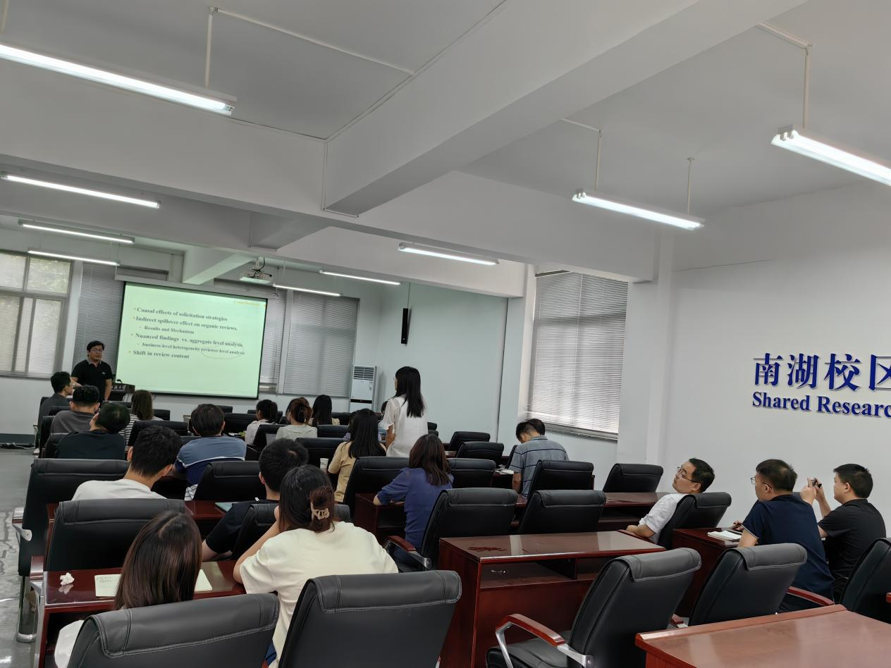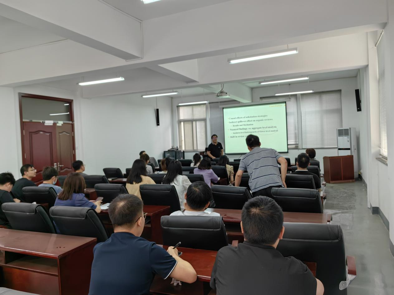 6月21日下午,武汉大学经济与beat365官方网站教授,博士生导师,管理科学与工程系主任高宝俊应邀为beat365官方网站师生带来2023第2期高端学术论坛,主题为《The Pitfalls of Review Solicitation: Evidence from a Natural Experiment on TripAdvisor》。beat365官方网站部分教师代表、青年博士及研究生参加讲座,讲座由beat365官方网站、管理与经济研究院夏火松教授主持。