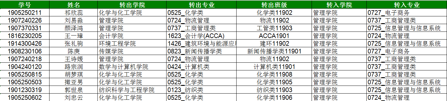beat365官方网站2019--2020学年第二学期,2019级转专业名单如下: