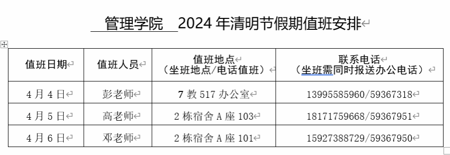 beat365官方网站2024年清明节值班安排