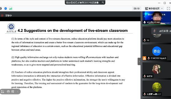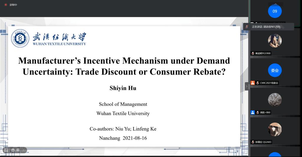 Xiong Mengni and Wang Zhiwei, 2019 graduate students of our college, and Hu Shiyin, 2020 graduate students, were invited to attend the meeting and made relevant academic reports at the branch venue. At the sub venue of "supply chain management" held on the afternoon of the 13th, Xiong Mengni gave an academic report entitled "the choice of an e-retailer's operation modes in competitive supply chains"; Then, on the afternoon of the 15th, Hu Shiyin and Wang Zhiwei gave a presentation entitled "manufacturer incentive mechanisms under demand uncertainty: trade discount or consumer rebate?" at two sub venues, including "operation / marketing / information system cross research" and "digital platform and marketing" And the academic report of Research on the Influence of Information Interaction on Users "Willingness to to," the Chinese mainland and many other universities and colleges participated in the discussion. Experts from the seminar commented on and gave full recognition to the academic reports of our research graduate students in Hongkong.