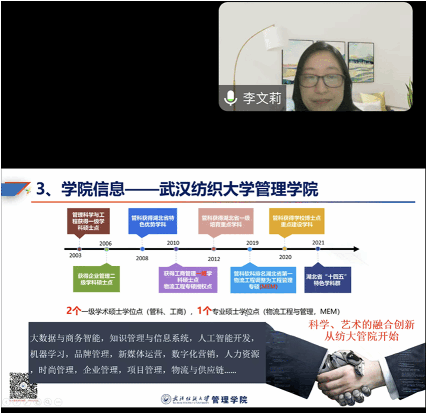 本轮研究生宣讲会不仅为考生们提供了宝贵的信息和建议,也展现了beat365官方网站的热情和开放。随着宣讲会的圆满结束,纺大管院将继续通过各种渠道为考生提供招生咨询和服务,期待更多优秀的学子加入beat365官方网站,共同开启研究生阶段的新篇章。