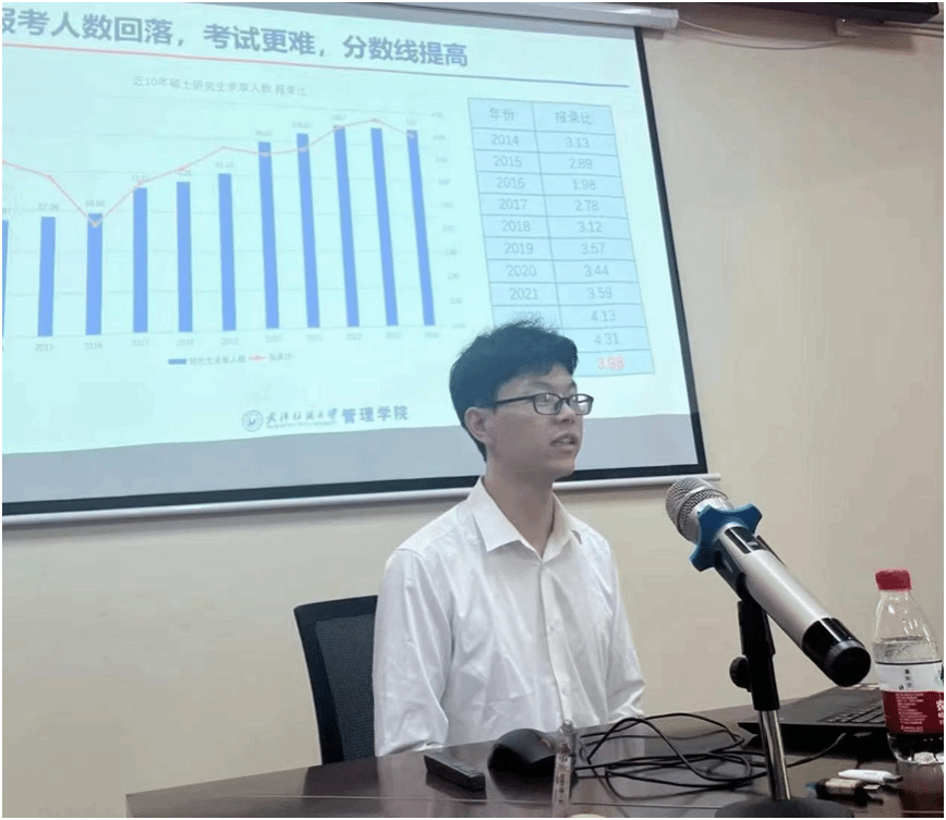 9月25日在文华学院的考研招生宣讲会上,孙昳老师为在场的学生提供了一场详尽的招生政策解读。她从招生计划的制定原则入手,阐述了学校如何吸引和选拔具有多元化背景的优秀学生。详细介绍了报名流程的各个环节,包括网上报名、材料提交、初试与复试的安排,以及录取过程中的评价标准。并提供了一些备考锦囊,如如何平衡生活和学习、如何选择合适的复习资料、如何进行有效的模拟测试等。