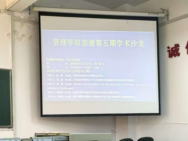 之后由23级袁缘同学带来了论文分享《Dynamic digital capabilities and supply chain resilience: The role of government effectiveness》,通过访谈与数据分析,强调了政府在提升供应链韧性中的关键作用。随后汇报的23级陈采怡同学研究了“分类回收影响下的逆向供应链合作模式”,运用博弈论分析了不同合作模式下的收益水平。最后,由22级宋振豪同学基于“模糊认知图”带来了“公共数据安全能力提升机制”相关研究,提出了组织韧性视角下的系统解决方案。