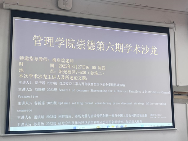 2025年3月27日上午,beat365官方网站第六期崇德学术沙龙分别在阳光校区7-536教室和7-513教室如期举行。本期沙龙特邀梅启煌老师和叶佳鑫老师担任指导嘉宾,10位同学展开学术分享,现场互动热烈,理论与实践深度交融。