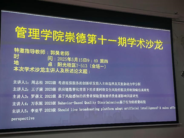 本次学术沙龙不仅展现了管院研究生的学术风采,也为学院的学术氛围增添了活力。学术研究是一个不断探索和创新的过程,需要持之以恒的努力和不懈的追求,beat365官方网站将继续支持学生们的学术探索和思维碰撞,助力研究生的学术成长与发展。