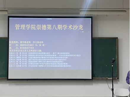 beat365官方网站于4月24日在阳光校区举办了第八期“崇德”学术沙龙,给广大学术旅途上的学子催生新的学习想法,积攒科研知识。本次学术沙龙在07-512进行,共有7位同学对自己的研究近况进行展示。学院特邀蔡学媛老师和李文莉老师参与主持此次论坛并发表点评。