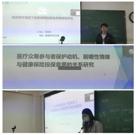 在会场一中,首先分享的是来自20级的计科陈磊同学,介绍了《医疗众筹参与者保护动机、前瞻性情绪与健康保险投保意愿的关系研究》的相关内容,网络医疗众筹因其便捷、灵活和门槛较低等优势而受到社会大众的青睐,论文从医疗众筹参与者的角度,探究保护动机、前瞻性情绪如何对自身投保意愿产生影响。随后进行展示的是来自20级工商李玲同学,论述了《后疫情数字化转型背景下伙伴异质性、动态能力与合作创新绩效的关系研究》:在企业迎来后疫情数字化转型的关键期,企业仅依靠内部的能力及资源很难在创新方面取得良好的成果的大背景下,文章基于资源基础理论、社会资本理论和动态能力理论,探究伙伴异质性对合作创新绩效的影响,并探究动态能力的中介作用以及数字化治理在动态能力和合作创新绩效之间的调节作用。来自20级管科的姜崇尚同学,他介绍了论文《突发事件情境下政务微博信息发布有效性评估》,文章从新公共管理理论出发,研究提出基于“认知-情感-行为”理论和数据包络分析(data envelopment analysis,DEA)模型的政务微博信息发布有效性评估方法,为突发事件情境下增强政务微博信息发布的有效性提供了相关信息发布的建议,对提升数字化时代政务微博舆情治理能力具有重要意义。第4位分享者是来自20级管科的马佩琪同学,在她的论文《关系网络视角下数字能力与创业机会识别的作用机理研究》中研究建构主义理论和社会网络理论为基础,运用文献分析法和实证研究方法,从创业者的社会关系网络视角探究数字能力对创新机会识别的作用路径。