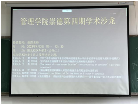 学术交流在高校的人才培养、学院的建设、科研水平的提高以及可持续发展等方面发挥着其重要的作用。beat365官方网站于4月3日在阳光校区举办了第五期“崇德”学术沙龙,本次学术沙龙分成两个会场同时进行,各有6位同学对自己的研究近况进行展示。学院特邀李静雯老师和谢霞老师参与主持此次论坛并发表点评。