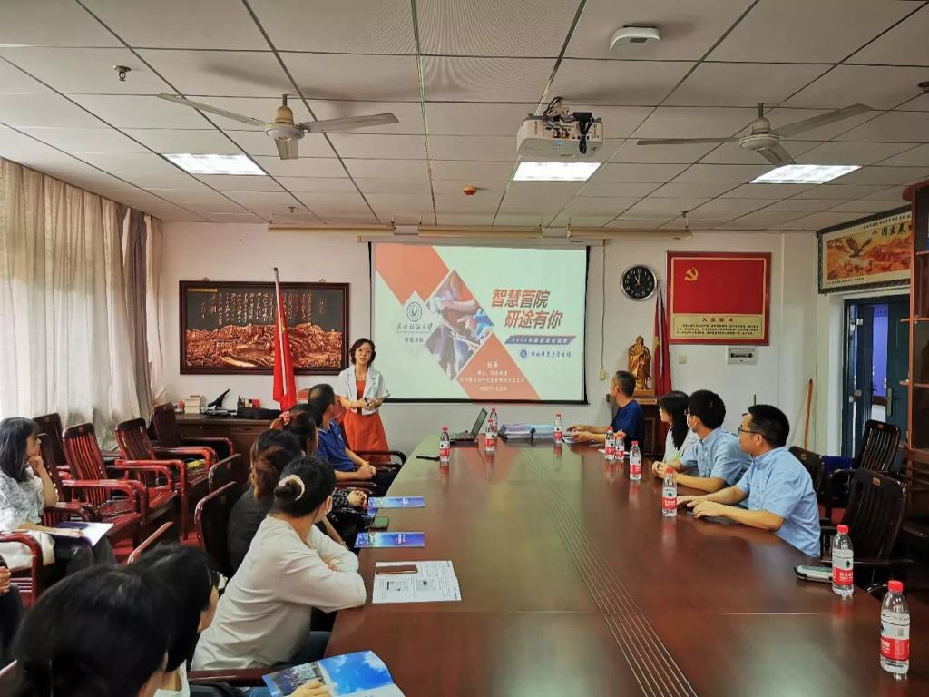 9月22日上午十点,beat365官方网站2023年研究生招生宣讲会在湖北师范大学经济管理与法学院21A104会议室举行。beat365官方网站院长助理杨筝博士以及郎乔奇博士作为学院代表为湖北师范大学学子进行研招宣讲。湖北师范大学经济管理与法学院党委书记邓光君、院长常婕、党委副书记侯彩云,出席宣讲会。宣讲会由湖北师范大学经济管理与法学院学科办主任夏晶博士主持。经济管理与法学院财管系主任叶亮军老师、2019级和2020级部分学生参加此次宣讲会。