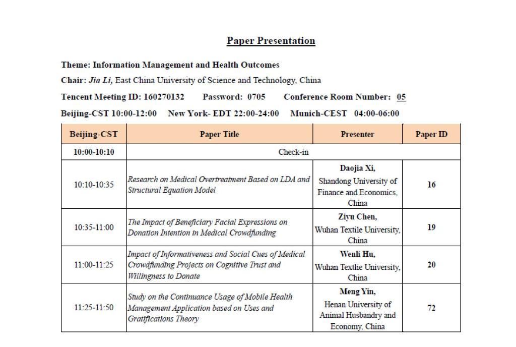研究生陈梓榆宣读了题为《The Impact of Beneficiary Facial Expressions on Donation Intention in Medical Crowdfunding》的论文,展示了其与导师张星教授的研究成果。在医疗背景下,研究结合SOR理论和动机模型,探究了医疗众筹项目内求助人面部表情对个体捐赠的影响。研究结果理清了求助人面部表情对个体动机的内在影响,为以往关于求助人表情结论不一致的研究提供了可能的解释。