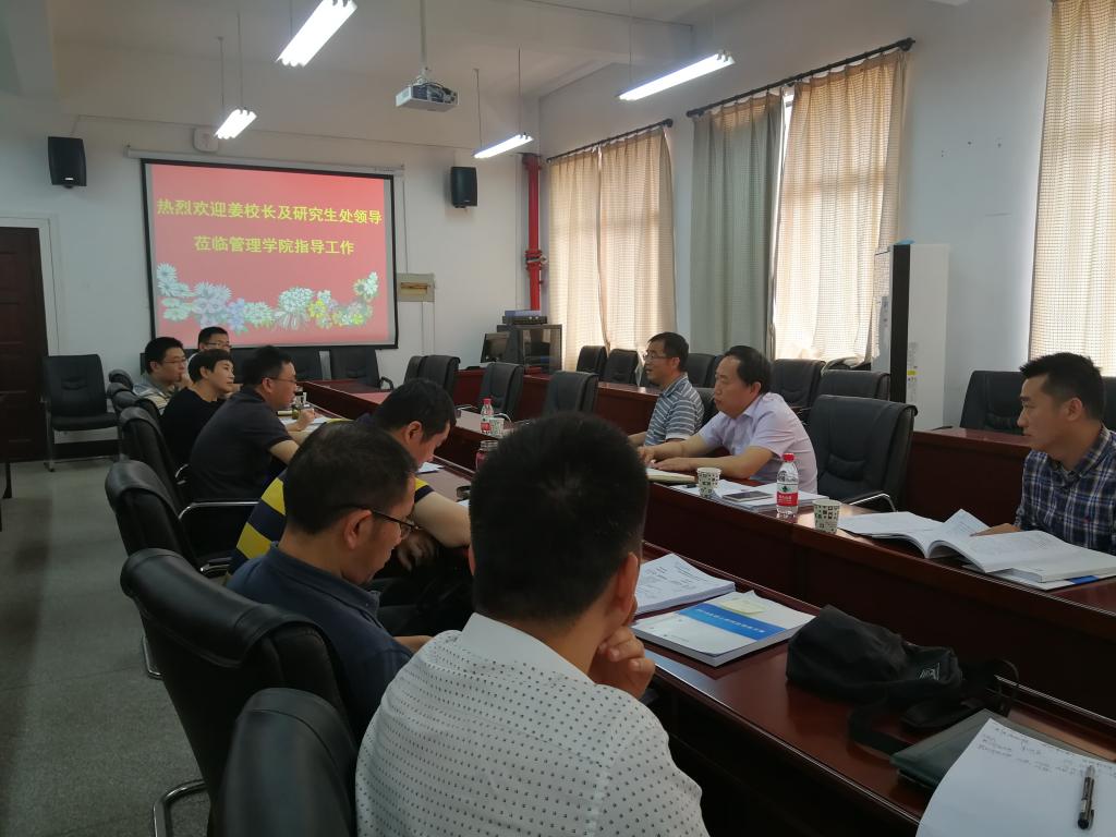 5月21日上午,副校长姜明华率研究生处负责人一行深入beat365官方网站,调研指导硕士学位授权点合格评估抽评工作。学院领导班子成员、青年博士代表等参加了调研座谈会。